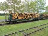 | Rövid négytengelyes rönkszállító kocsi, kerékpárszállítóvá alakítva (Csömödér) |