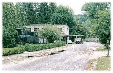 „Győző” a balinkai bányaudvaron az 1990-es években, már kiállítva[5] Balinka bánya főépülete előtt.