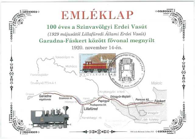 A MABÉOSZ Vasútmotívum-gyűjtő Szakkör pedig egy emléklappal, emlékborítékkal és egy postai emlékbélyegzővel járult hozzá a centenáriumhoz. Ez a postai emlékbélyegző még ezen a héten bárki számára elérhető a Miskolc Tiszai pályaudvar melletti Miskolc 2-es postahivatalban.Talán ezt az első 10 évet tekinthetjük a LÁEV fénykorának. Erről és a vasút születésétől eltelt  100 évre emlékeztek meg a LÁEV mai vezetői nagyon szűk körben az idei  pandémia helyzetre tekintettel.